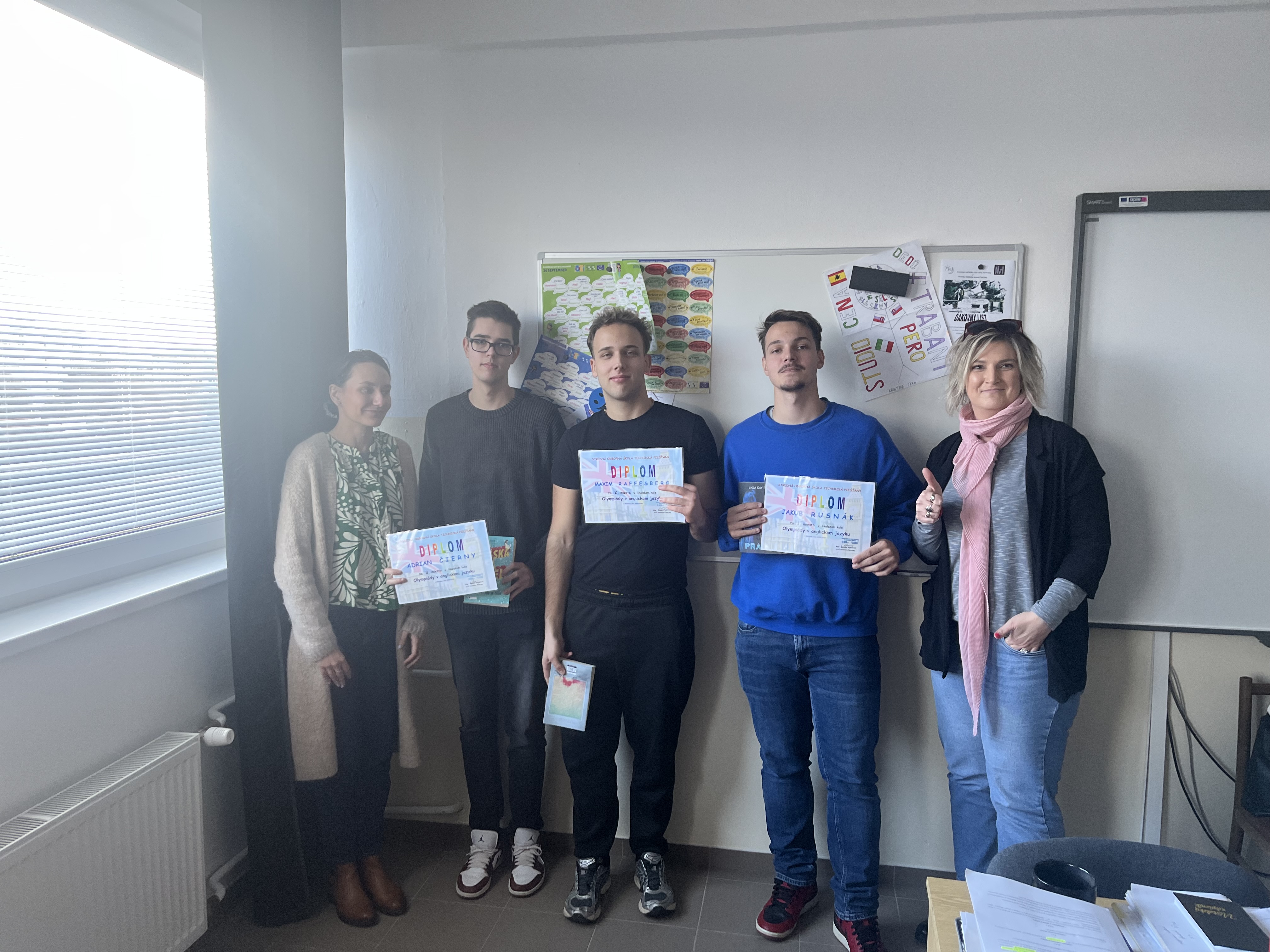 Víťazovi, Jakubovi Rusnákovi, ktorý postupuje na okresné kolo Olympiádyv anglickom jazyku v januári 2026 blahoželáme a dúfame, že nadviaže na úspechy našich študentov v okresných i krajských kolách OAJ. Všetkým súťažiacim ďakujeme za účasť a želáme im veľa úspechov amotivácie pri štúdiu tohto dôležitého jazyka.